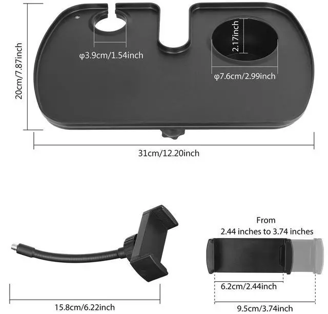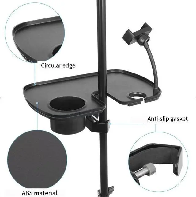 • Sound Card Tray Microphone Stand Clamp on Live Broadcast Mic Rack Clip with Drink Holder and Microphone Holder