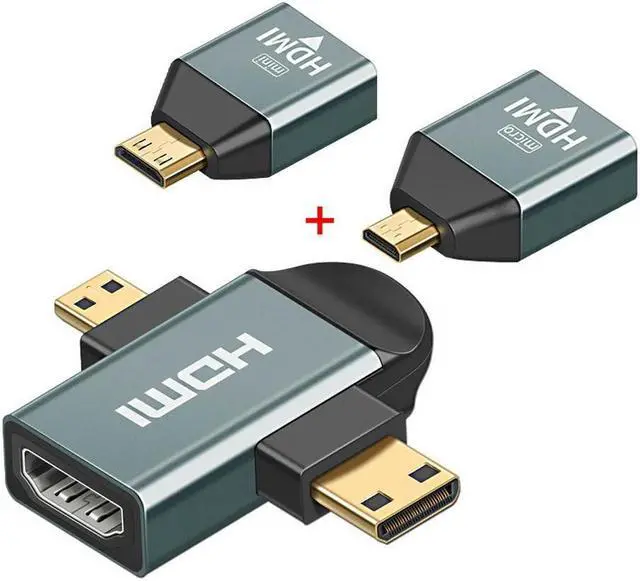 • OIAGLH 3pcs/set Micro & Mini HDMI to HDTV 1.4 Female 2-in-1 Combo Adapter 4K@60hz