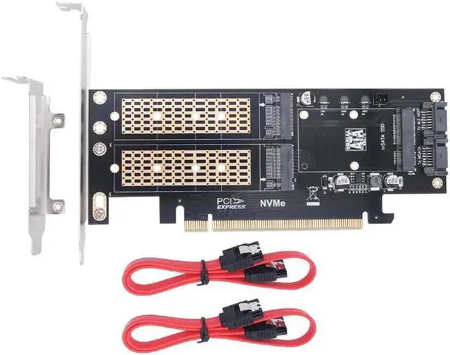 • FOR 3 in 1 Desktop Computer Riser Card PCIE X16 to M.2 M Key NVME SSD+M.2 B Key SATA SSD+MSATA SSD Adapter Card