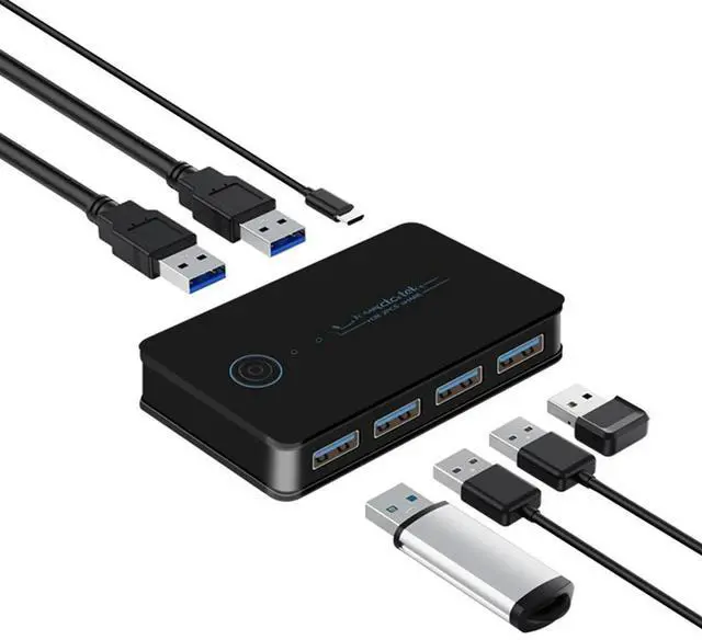 • FOR USB KVM Switch USB Shared Switcher 2 in 4 Out for Laptop PC Keyboard Mouse Printer USB Switch Hub Adapter USB 3.0