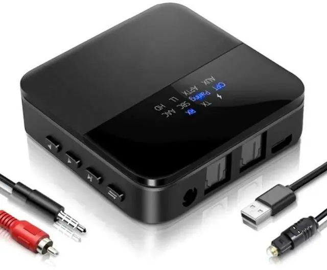 FOR Aptx HD 5.0 Audio Adapter For 2 Headphones, With Display, Low Latency, Supports Fibre Optic Cable