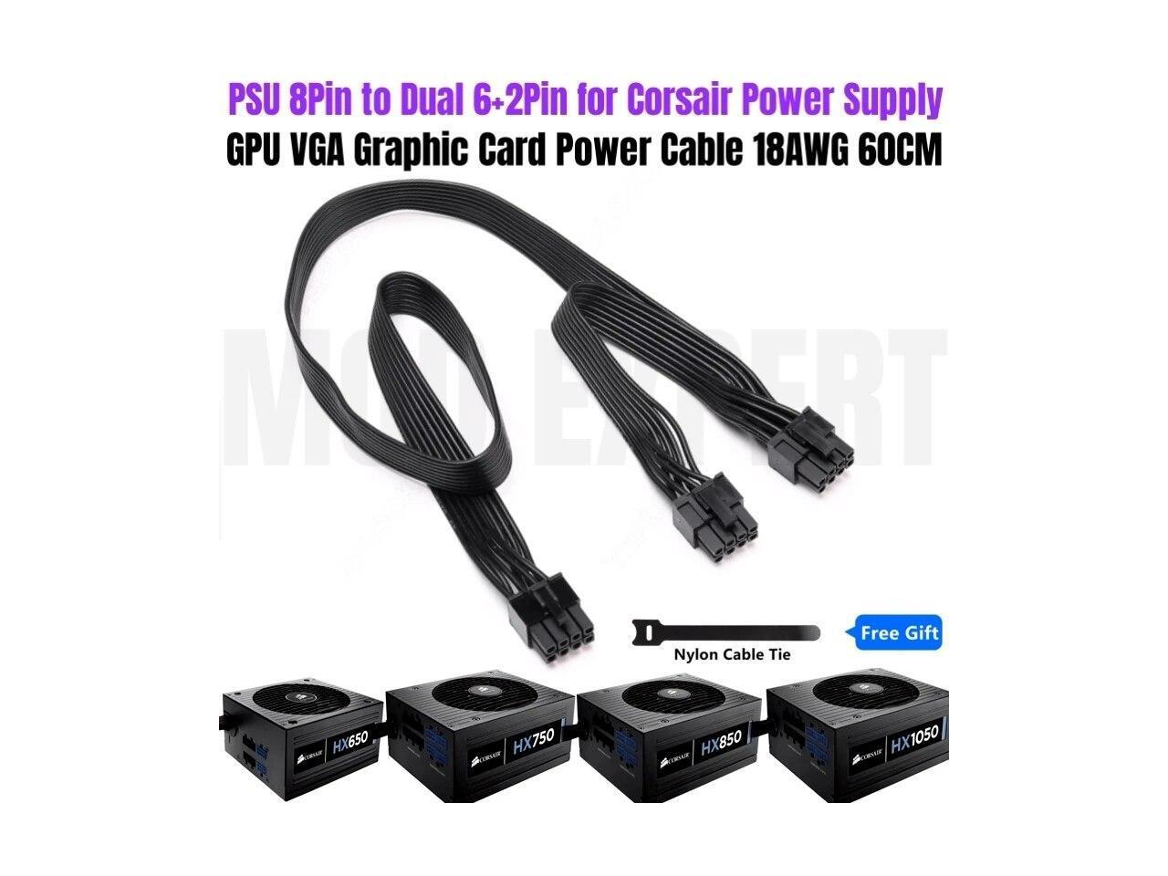 - PSU 8Pin to PCIe Dual 8Pin Original GPU Modular Power Cable for CORSAIR HX650 HX750 HX850 HX1050 Gold Power Supply 60+20CM 18AWG