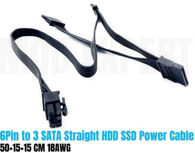 YEPLOOK 6Pin to 3x SATA Straight, SSD HDD Power Cable for Corsair RM650i RM750i RM850i RM1000i RM-i Type 4 Modular Powers, 18AWG 50+15+15CM