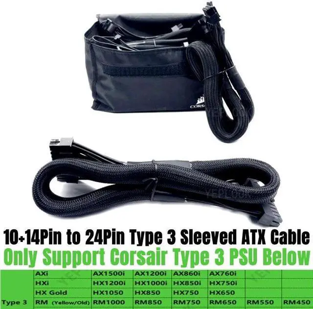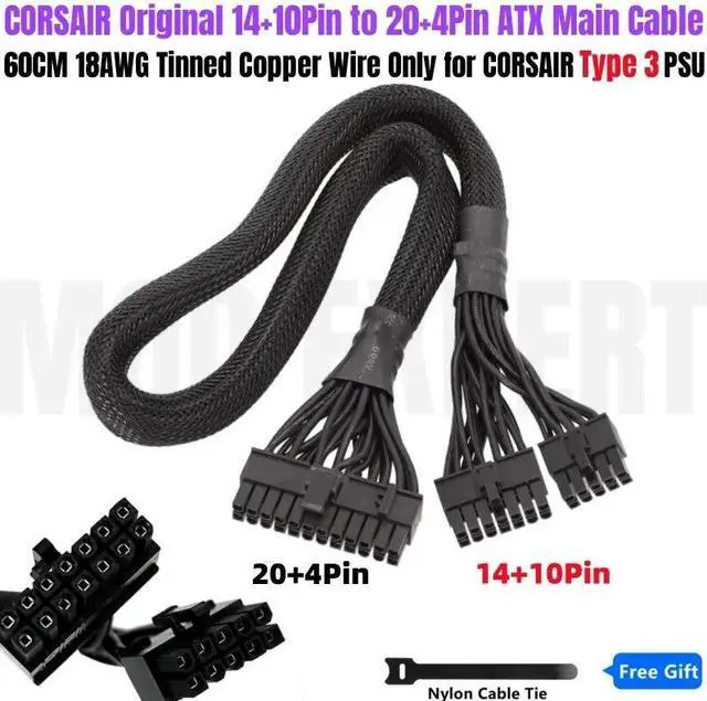 Original 14+10Pin to 20+4Pin 24P ATX Modular Power Cable for CORSAIR HX750i, HX850i, HX1000i, HX1200i HXi Type 3 PSUs 18AWG 60CM