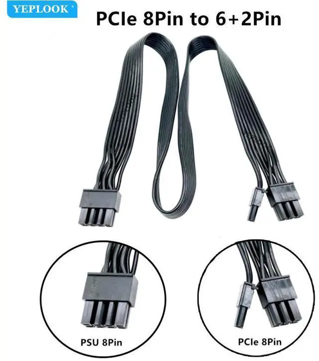 3. PCIe 8Pin comes as "6+2" connector, allowing it to fit into GPU cards with 6Pin and 8Pin by sliding on/off the 2pin. Compatible with video card that has 8pin, 6pin or 8pin+6pin power socket.
