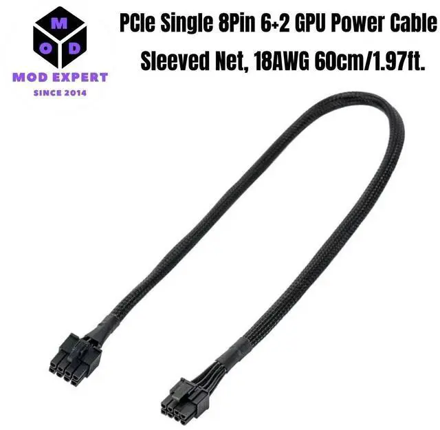 PCIe Cable could be used as 6Pin or 8Pin by sliding on/off the 2Pin. Compatible with PCI-E video card that has 8pin, 6pin or 8pin+6pin power socket. Such as for ASUS, ASRock, Gigabyte, Radeon, Sapphire, NVIDIA Tesla GPU, etc. Supports power for GTX1080, GTX1080Ti, RTX2060, RTX2070, RTX2080, RTX2080Ti, RTX3060, RTX3070, RTX3080 Ti, RTX3090 Ti, RX570, RX580, RX590, RX5700XT, RX6700XT, RX6800XT, RX6900XT, etc,.