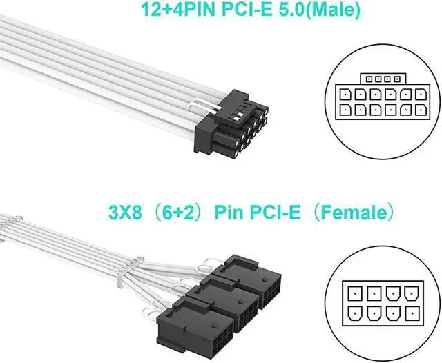 BUCIER 12+4pin transfer 3×8PIN ATX Extension Cable 3.0 Mixed Next-gen PCI-E 5.0 Extension Kit White