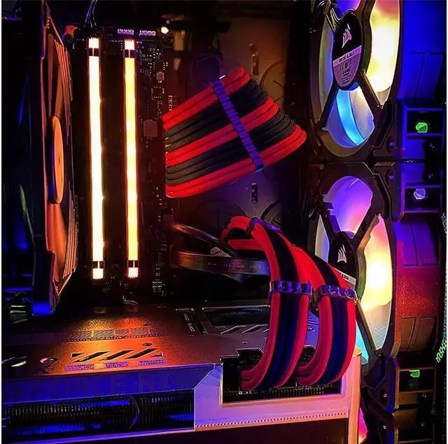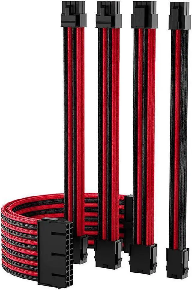 BUCIER Power Supply Sleeved Cable, Extension PC Kit, 18AWG 24Pin ATX / 8 (4+4) Pin EPS / 8 (6+2) Pin PCI-E Power Supply PSU Cable with Combs, 30CM Black & Red