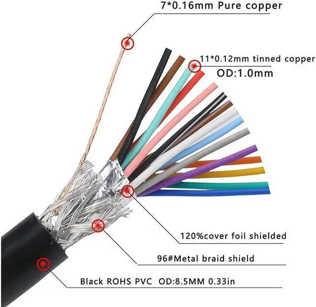 Db15 Shielded Cable Adopts Double-Layer Shielding Structure: Aluminum Foil Shielding + Metal Braided Mesh Shielding, Which Can Shield Emi / Rfi Interference Signals Generated By External Electric Field