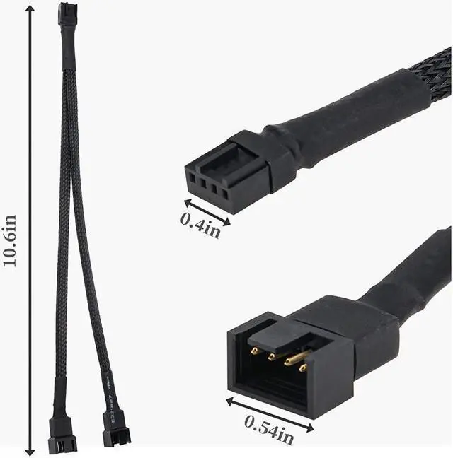 Package includes: 3 pack 10.6 inch 1 to 2 PWM fan splitter cables.