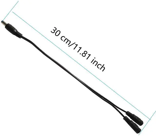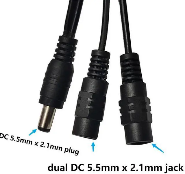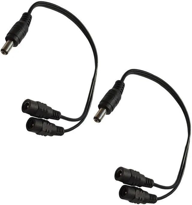 This 1 male to 2 female 5.5mm x 2.1mm DC Y splitter cable uses one power adapter to power two cameras/LED ight strips,which is convenient and cost-effective. (Note:This cable will only work with power adapter with 2.1mm x 5.5mm plug)
