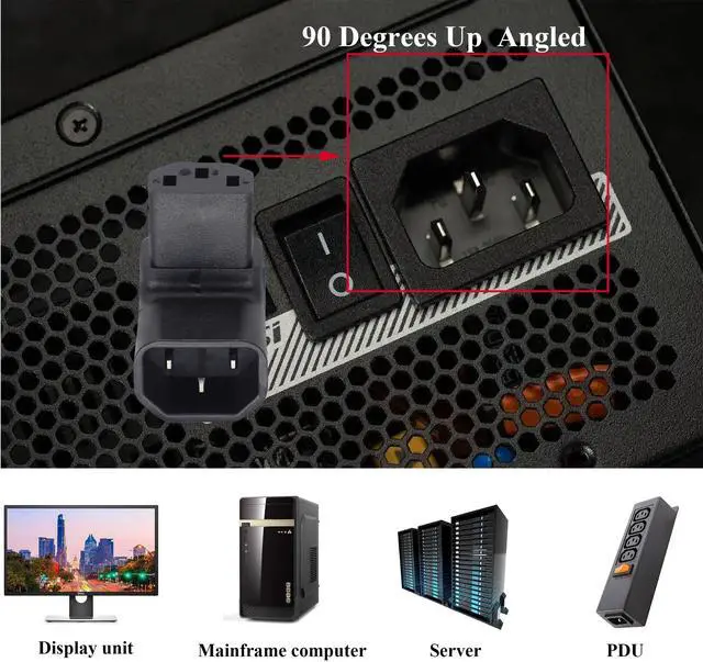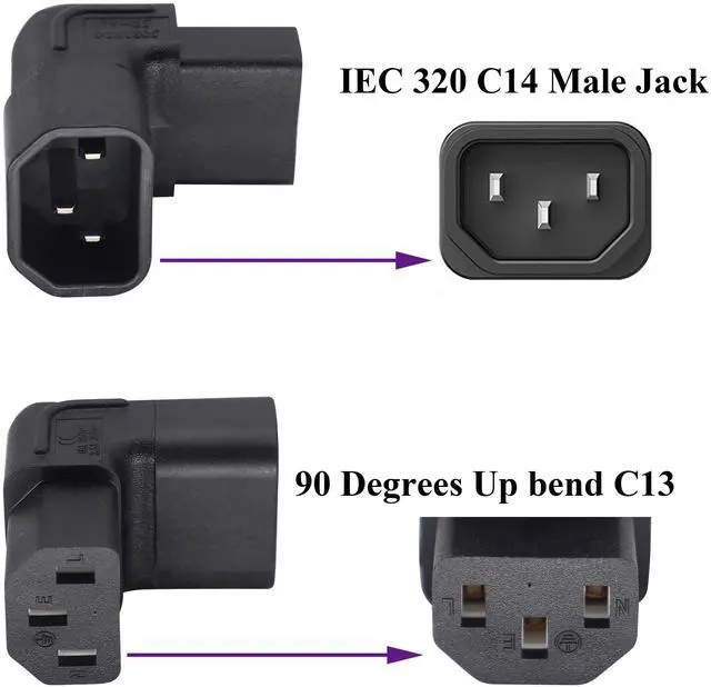 BUCIER 90 Degree C13 to C14 AC Powe Adapter, IEC C13 Female to IEC C14 Male PDU 3 Pin Power Socket Extension Converter for Computer LED HDTV Monitor Etc. (2 Pack) (UP Angled)