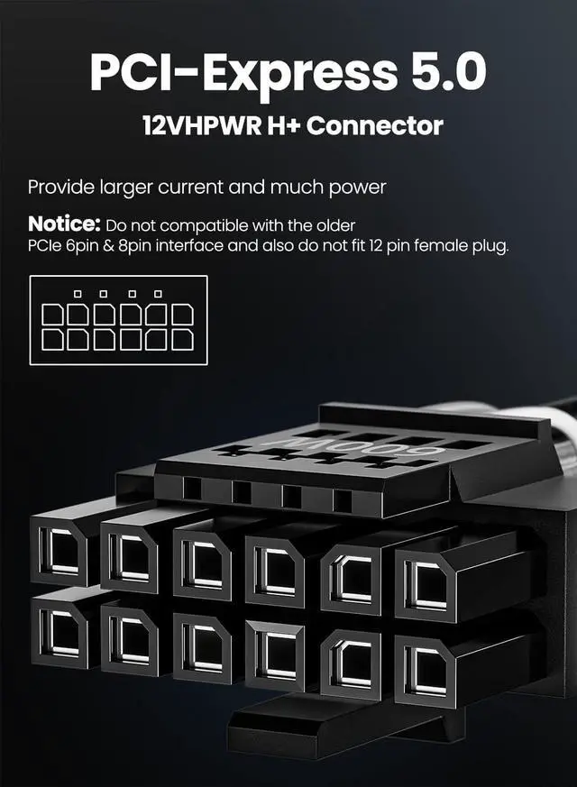 Designed for RTX 3090Ti and 4080 4090Fasgear PCI-Express 5.0 GPU power cable is designed for GeForce RTX 3090 Ti and RTX 4080 4090 Graphics Cards. It is 3x8-pin(6+2 pin) to PCIe 5.0 12VHPWR power cable. The PCI-E 5.0 graphics cards will be powered from modular power supply through only three 8-pin(6+2 pin) to one 16-pin cable adapters simply. NoteThis GPU power cable is not suitable for 12pin GeForce RTX 3090 Series GPU. Only support 12+4pin female GPU like RTX 3090Ti and 4080 4090 Series.