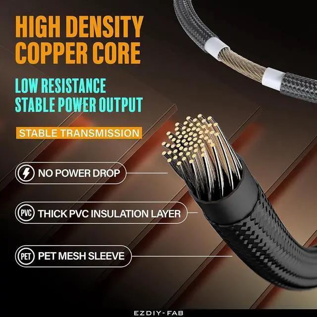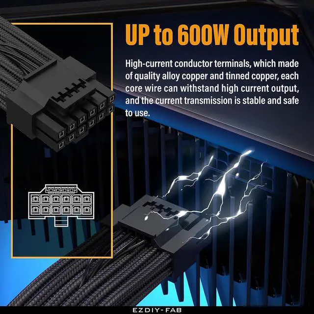 The cable material is made of 16AWG tinned copper, and the terminal is made of alloy copper, providing support for a maximum output of 600W, stable performance and safety under high-load use, no frame drop , no screen flickering, and continuous power supply.