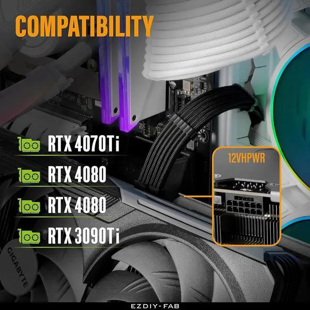 Please note that the GPU sleeved extension cable is not suitable for 12pin GeForce RTX 30' Series GPU. Only support 12+4pin female GPU like RTX 3090Ti, RTX 4080, RTX 4090 and 40' series.