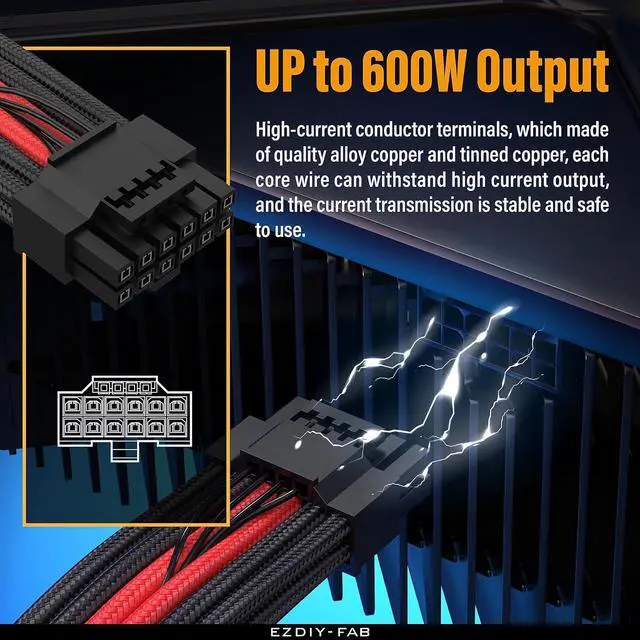The cable material is made of 16AWG tinned copper, and the terminal is made of alloy copper, providing support for a maximum output of 600W, stable performance and safety under high-load use, no frame drop , no screen flickering, and continuous power supply.