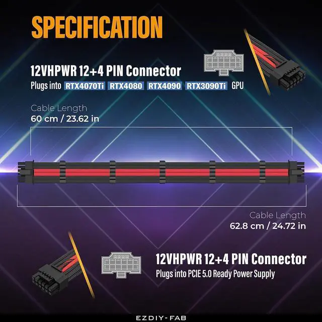 Dedicated design for the specs of 12VHPWR PCIe 5.0 Graphics Card, Connect to RTX3090ti/4090/4080/4070ti/other 40' series GPU without hassle, connecting to PCIe 5.0 Ready PSU to get a stable and reliable performance.