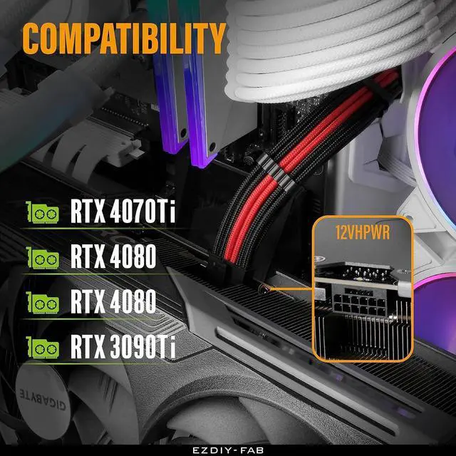 Please note that the GPU sleeved extension cable is not suitable for 12pin GeForce RTX 30' Series GPU. Only support 12+4pin female GPU like RTX 3090Ti, RTX 4080, RTX 4090 and 40' series.