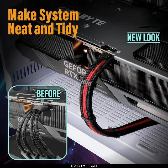 This cable is compatible with Modular Power Supplies featuring 12VHPWR power ports (search for PCIE5.0 Ready PSU). It only requires a single 16-pin power cable to directly power the GPU from the PSU. This simple setup promotes tidiness and prepares you for the future of power delivery.