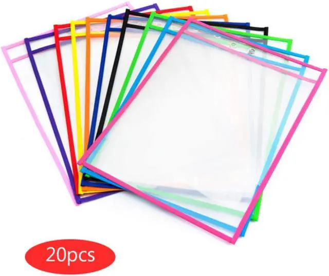• HOT 20pcs Reusable Dry Erase Pockets Worksheet Sleeves Shop Ticket Holder Assorted Colors 10x14 inch For Teaching Supplies Kids