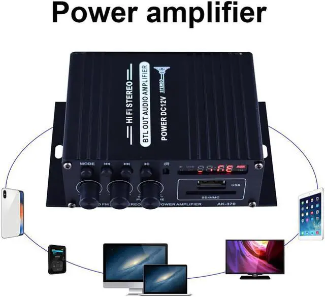 • AK-370 Bluetooth-compatible Amplifier 20W+20W Home Theater Amplifier DC 12V Audio Power Amplifier Mini HIFI Stereo USB OTG Input