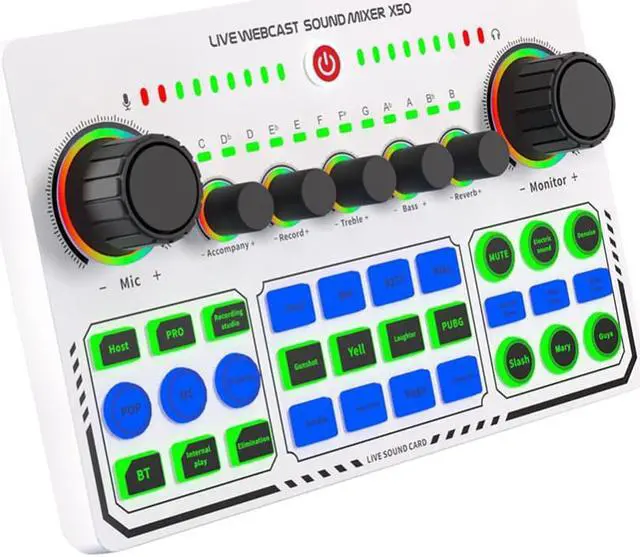 • X50 6 Modes RGB LED Wireless Bluetooth-compatible External DJ Mixer Sound Card Noise Reduction for Live Streaming Broadcasting