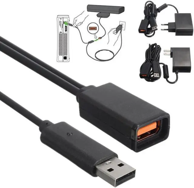 • Black AC 100V-240V Power Supply EU Plug Adapter USB Charging Charger For Microsoft For Xbox 360 XBOX360 Kinect Sensor