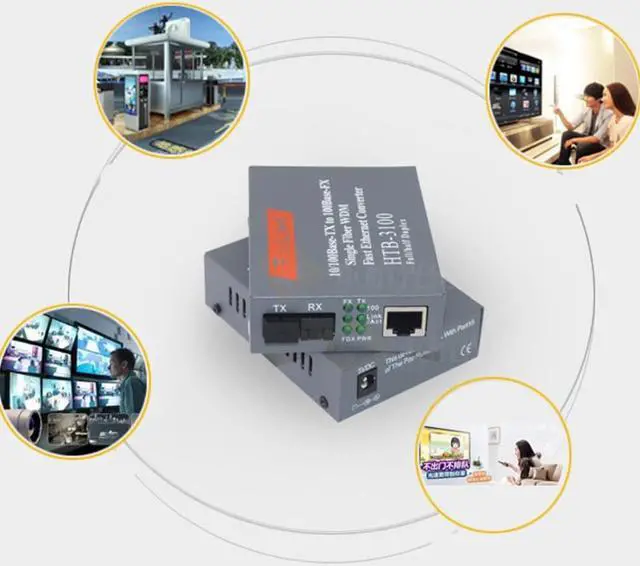 Fiber Optical Media Converter 10/100Mbps Single Mode Single Fiber SC Port External Power Supply Fiber Media Converter