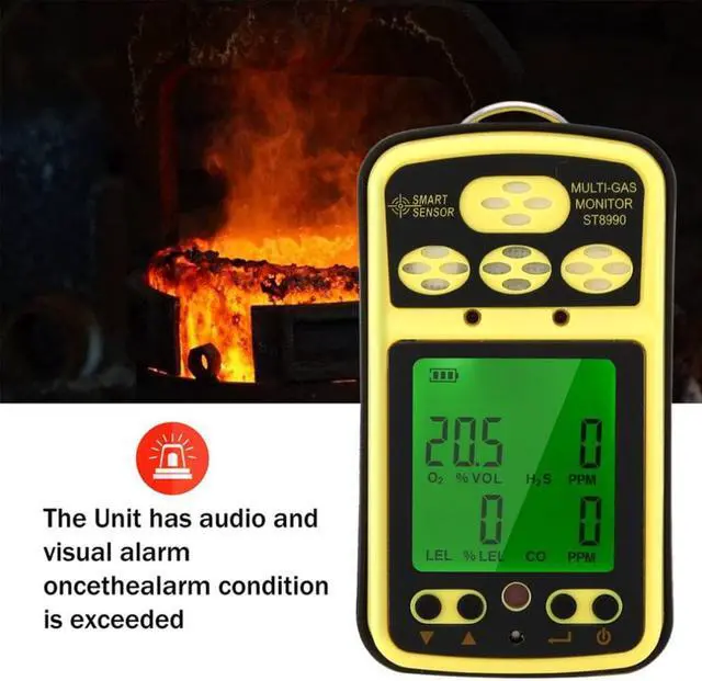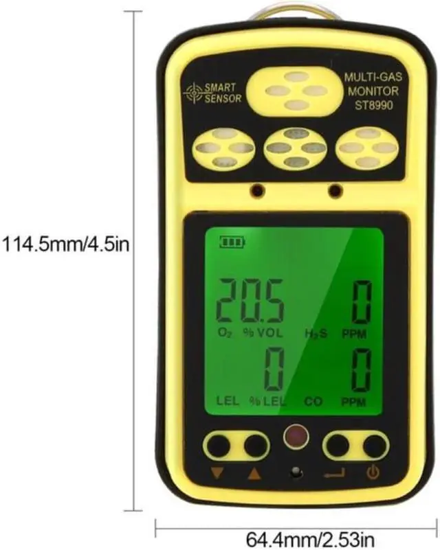 • 4 in1 SMART SENSOR ST8990 Multi Gas Monitor Rechargeable O LEL CO HS Gas Detector Tester Sensor with Backlight Alarm Function