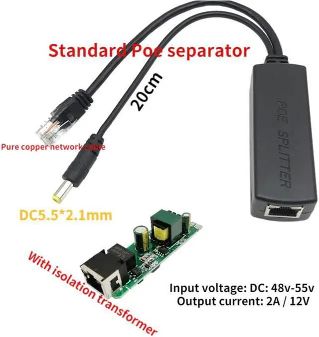 National standard 48V Poe separator network centralized power supply network monitoring transmitter national standard band isolation, standard 48v-55v Poe separator, compatible protocol IEEE 802.3af/tf, compatible with POE network switch in the market, 12 + 36 power supply mode