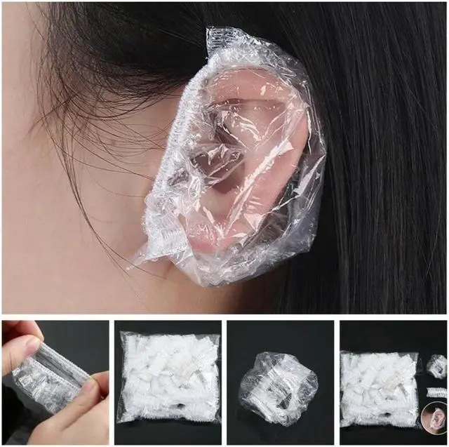 100 Pcs Thickened Disposable Plastic Waterproof Ear Protector Cover Caps Salon Hairdressing Dye Shield Earmuffs Shower Tool