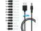 USB to DC power cord 11 in 1 with 8 interchangeable plug connector adapters