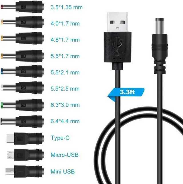 USB to DC power cord, equipped with 11 interchangeable plug connectors, suitable for most household appliances. When using various devices, you don't have to worry about finding the right adapter.