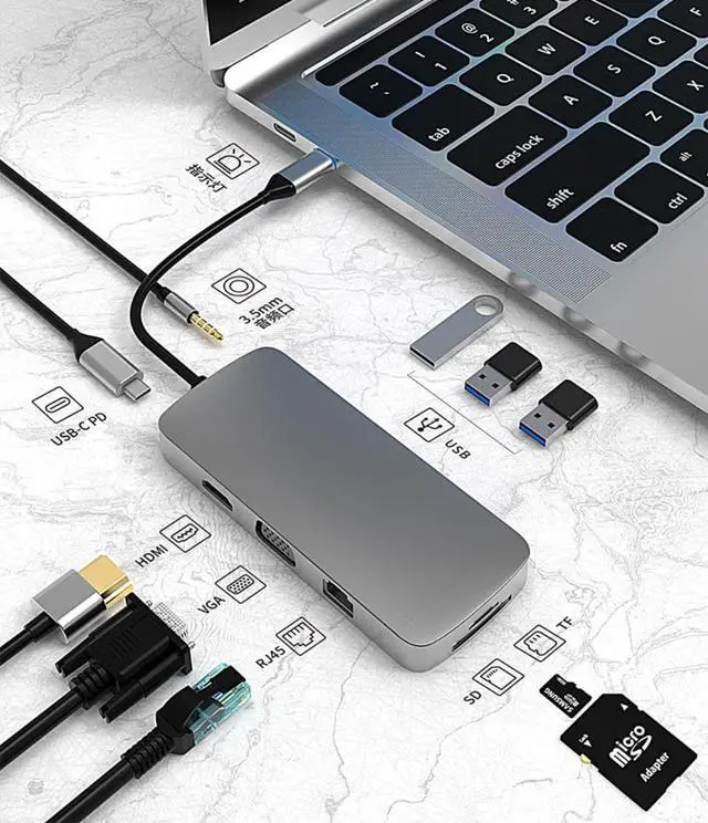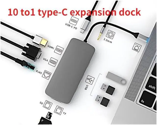 • USB C HUB Type C to HDMI-compatible USB 3.0 Adapter 10 in 1 Type C HUB Dock for MacBook Pro Air USB C Splitte