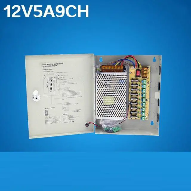 DC 12V 5A 9 Channels Power Box Switching Power Supply Box for surveillance Security Camera 9CH Ports 100V-240V Input