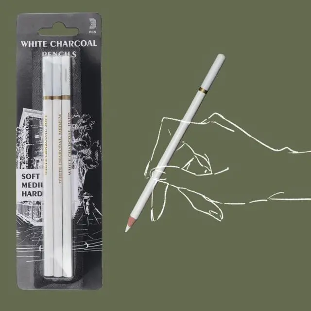VALUE PACKAGE. Each package comes with 3 pieces white charcoal pencils, Soft/Medium/Hard 3 kinds. Pencil nib size 4mm. Iideal for use on dark or tinted paper and can also be used in conjunction with other drawing media