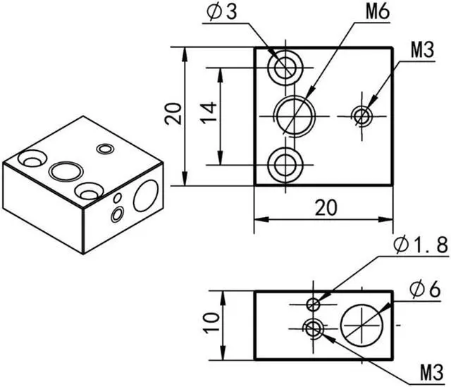 Heatblock size approx 20x20x10mm/0.79x0.79x0.39in. Inner hole for set screw: M6 and M3.