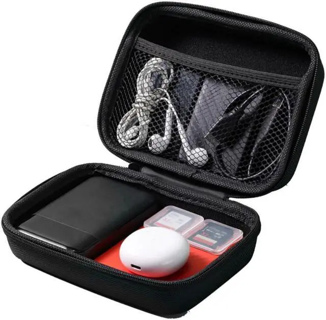 It can hold chargers, batteries, memory cards, digital camera, cable, external driver, flashdrive, chargers.