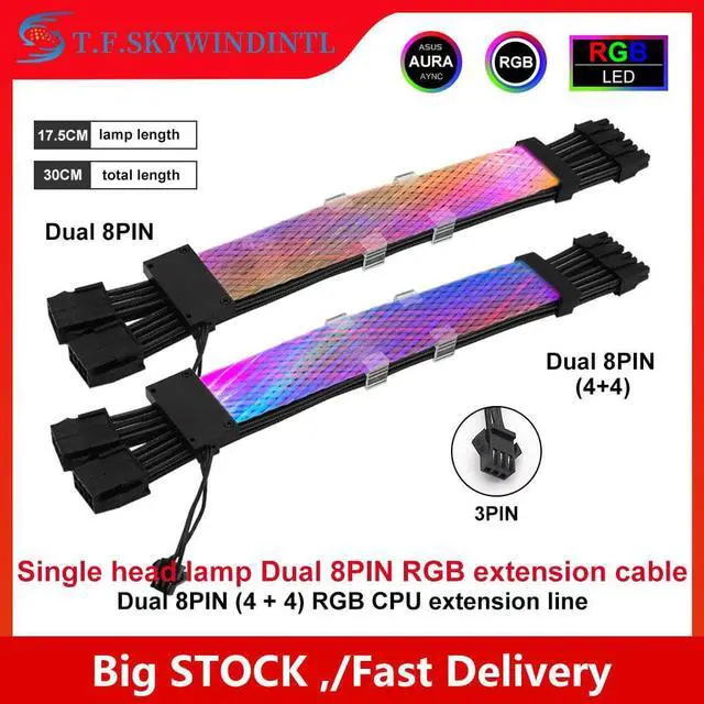 The 8-pin (4+4)*2 RGB makes your computer cool and shiny A mesh CPU extension cable