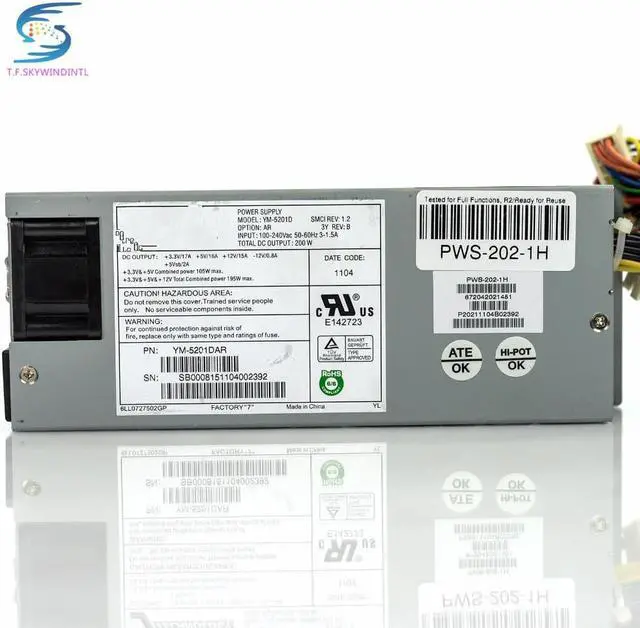 free ship YM-5201D PWS-202-1H 200W Low Profile Power Supply 20-Pin 6-Pin SATA IDE Mini 1U 200W Power Supply psu for network