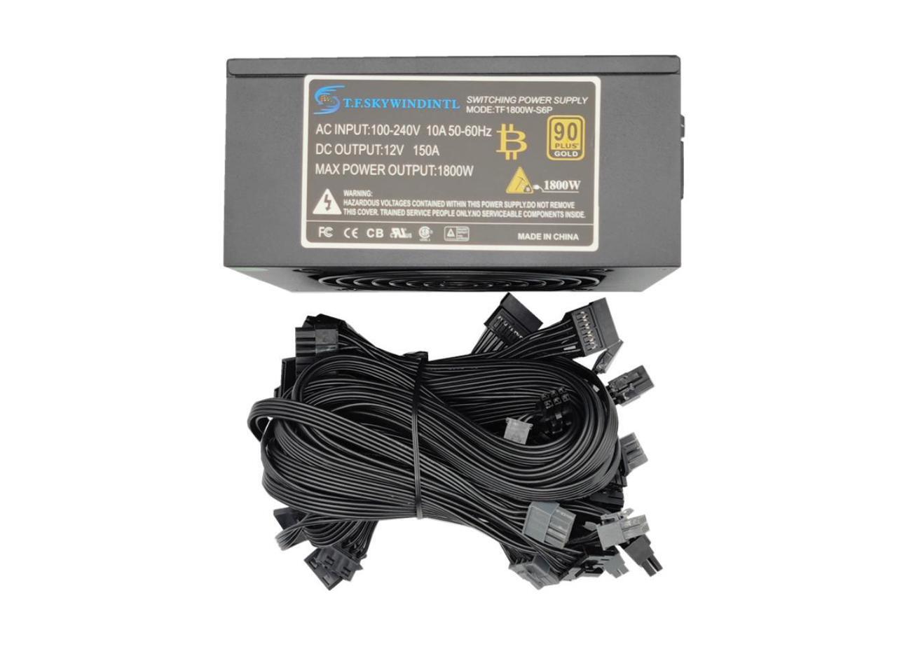 1800W Rated Miner Power Supply 95% High Efficiency AC 90V-260V ATX Mining Power Source Support 6 CPU Card Dual CPU