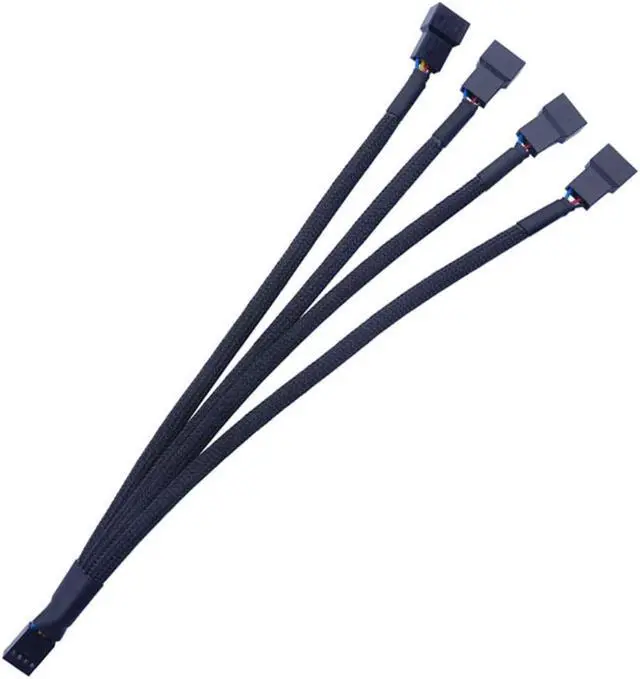 • CPU 4Pin 1 To 4Ways Splitter Fan Extension Power Cable with Black Sleeved PWM Temperature Control Cord 26.5cm