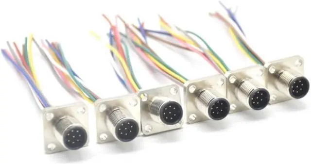 • M12-8 Core 6P 2A Square Fixed Male Connector with Hole Connector Aviation Plug with 10cm Electronic Wire