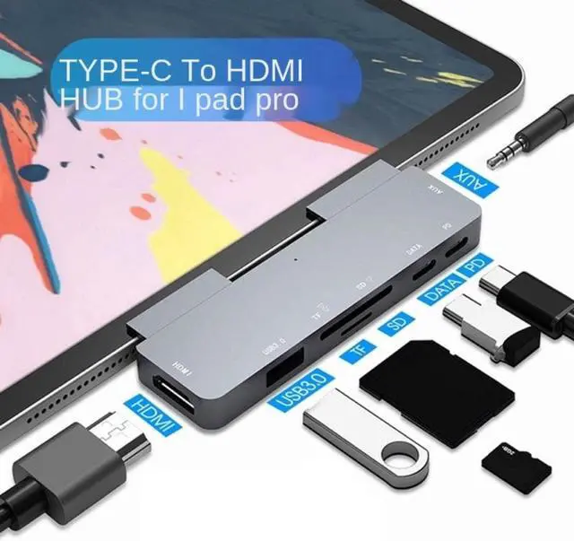 • USB Type C TO USB 3.0/2.0 Adapter 60W PD Quick Charging Data Transmission 7 IN 1 HUB for Ipad Pro MacBook Type C Phone