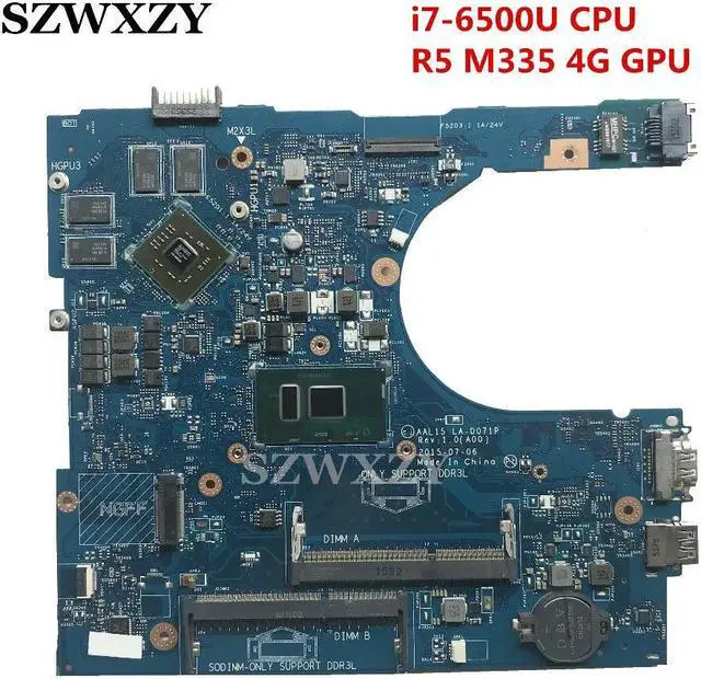 • For Inspiron 15 5559 Laptop Motherboard AAL15 LA-D071P YVT1C 0YVT1C CN-0YVT1C i7-6500U CPU R5 M335 4G GPU
