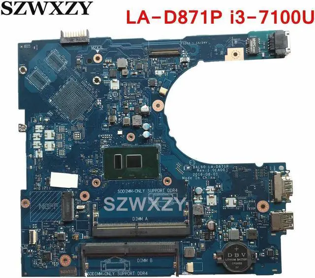 • For Inspiron 5566 5468 Laptop Motherboard CN-0DMD9K 0DMD9K DMD9K BAL60 LA-D871P i3-7100u DDR4