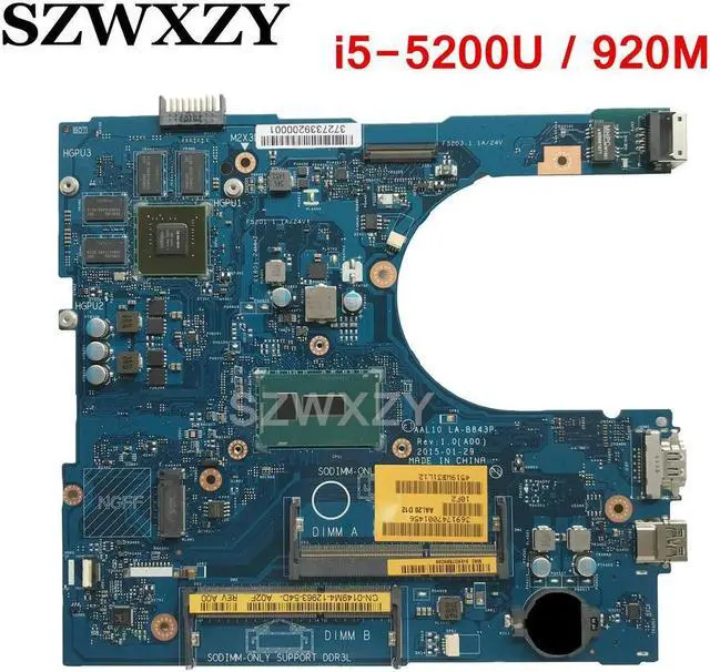 • For Inspiron 5458 5758 5558 Laptop Motherboard CN-0149M4 0149M4 149M4 AAL10 LA-B843P i5-5200U CPU 920M GPU