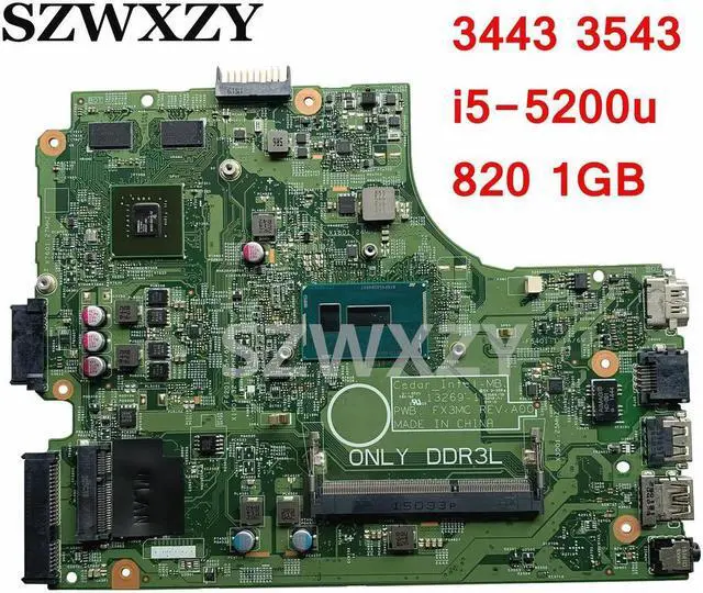 • 06F3DW For Inspiron 3443 3543 Laptop Motherboard CN-06F3DW 6F3DW With SR23Y i5-5200u 820 1GB GPU DDR3L