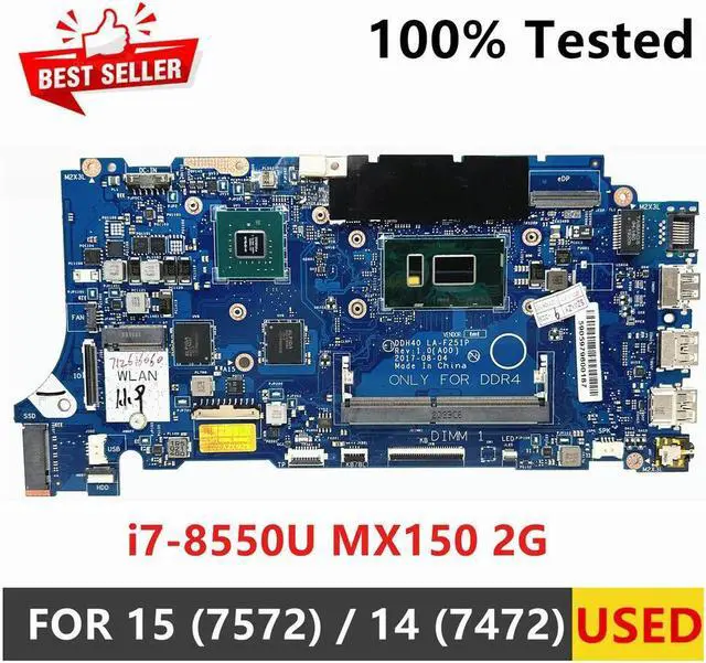 • For Inspiron 15 7572 14 7472 Laptop Motherboard i7-8550U MX150 2G LA-F251P 0WV6GW WV6GW