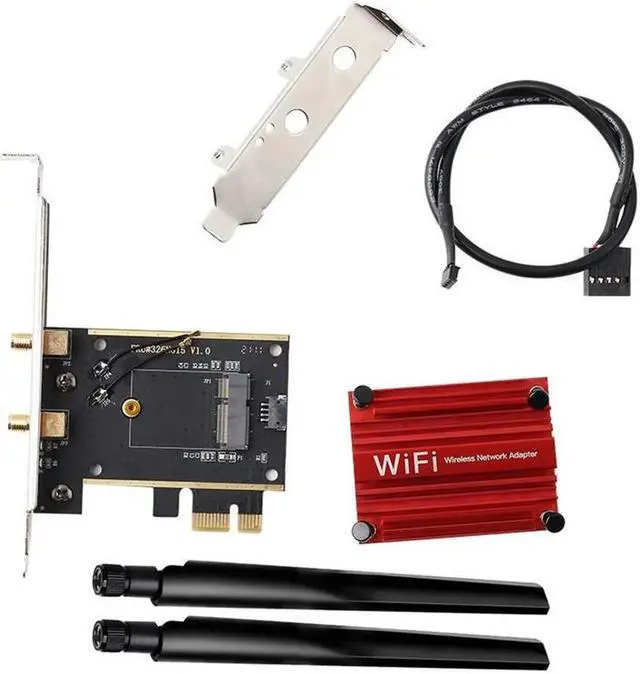 • M.2 to PCIE Wireless Adapter Converter NGFF M.2 Bluetooth Card with 2X Antenna for AX210 AX200 9260 8265